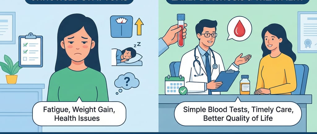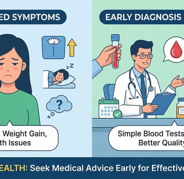 Thyroid disorders are common but often go unnoticed, especially in women, leading to weight gain, fatigue, and other health problems. Early diagnosis through simple blood tests and timely treatment can prevent complications and significantly improve quality of life. If you notice persistent symptoms, seeking medical advice early can make treatment easier, safer, and more effective.